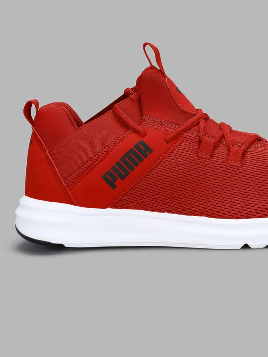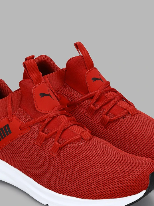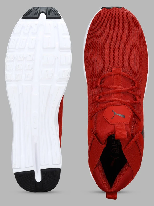 Product Story: Get ready to conquer the track in style with the Enzo Leam Men's Running Shoes. The lightweight textile upper in a bright and bold colorway will have you turning heads as you breeze past your competition. With a durable outsole and SoftFoam sockliner for cushioning, these shoes will keep you running for miles. Features & Benefits SoftFoam+: PUMA’s comfort sockliner for instant step-in and long-lasting comfort that provides soft cushioning every step of your day Details Heel type: Flat Shoe width: Regular fit Shoe pronation: Neutral Heel-to-toe-drop: 12 mm Built for a running distance of upto 800 km Low boot Textile upper Zoned rubber outsole PUMA cat logo at tongue PUMA wordmark on lateral sides Ideal for road and treadmill running